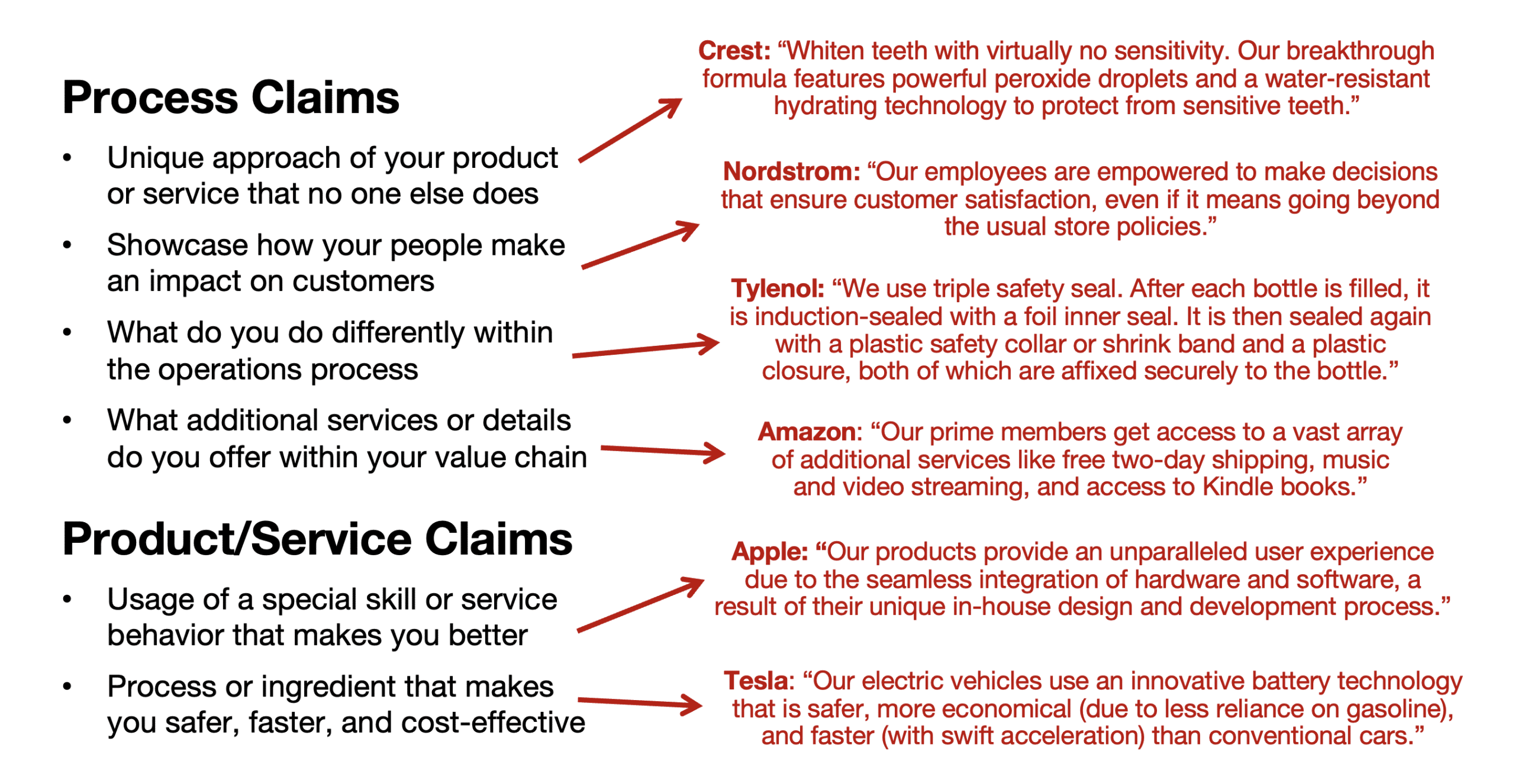 - Exclusivity claims emphasize something only you deliver.