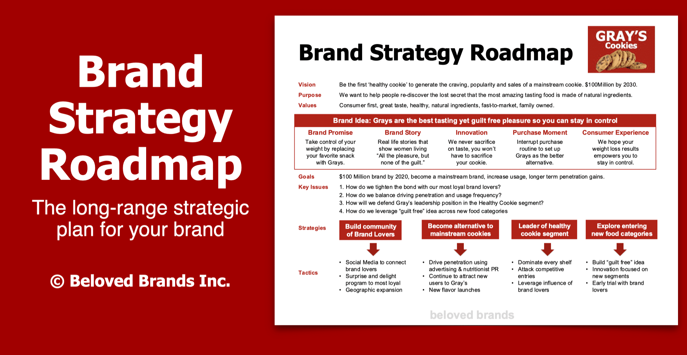 Below, we use our Brand Idea Map to stretch Gray’s Cookies’ “guilt free” brand idea across all consumer touchpoints.